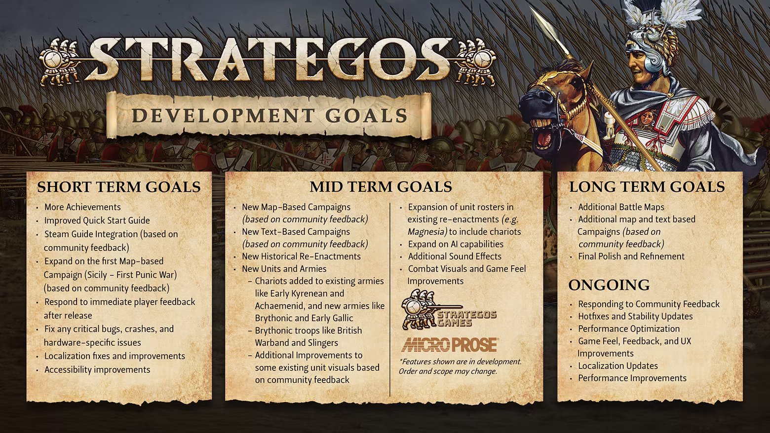 游戏包含250种以上单位和约120个势力,包括不同时代的希腊化帝国、阿契美尼德波斯帝国、罗马、迦太基、高卢、日耳曼和伊比利亚部落、翁布里亚人和萨莫奈人等意大利原住民、古希腊的主要城邦、色雷斯人等。